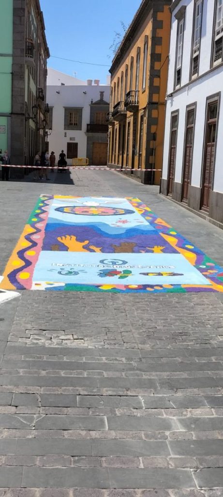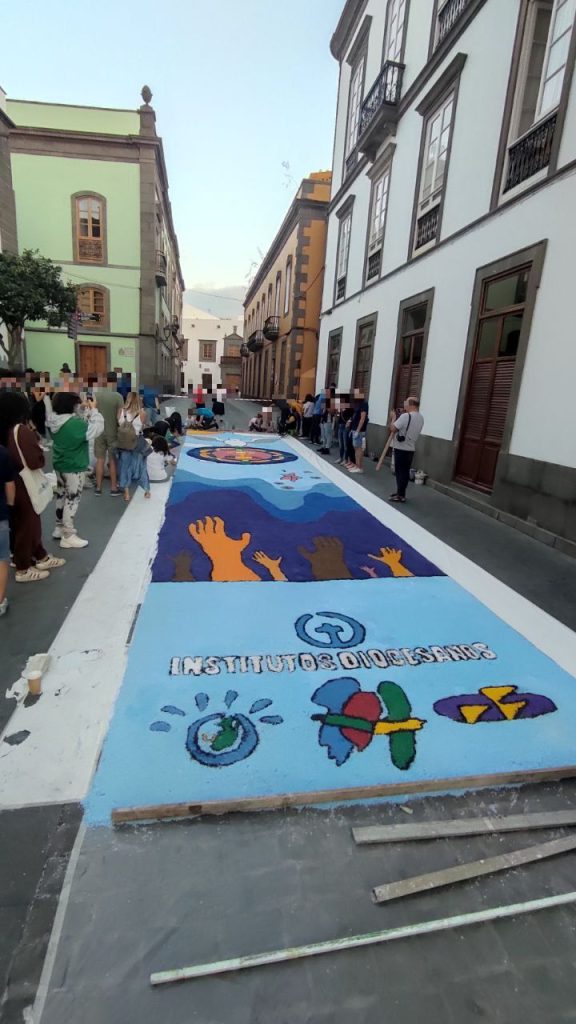 ¡Mágico y colorido encuentro en Vegueta! 💫✨ El pasado sábado 10 de junio, los tres institutos diocesanos se unieron para disfrutar de una experiencia fascinante en honor al Corpus Christi. Frente a la majestuosa catedral de Santa Ana, nuestras manos se llenaron de arte y devoción mientras elaborábamos las impresionantes alfombras que adornaron el recorrido sagrado. Cada detalle meticulosamente colocado, cada color vibrante y cada pétalo de flor confeccionado con amor, se unieron para crear un tapiz único que cautivó a todos los presentes. Fue un verdadero honor ser parte de esta tradición arraigada en nuestra cultura y fe. ¡Gracias a todos los que nos acompañaron y nos inspiraron con su entusiasmo! 🌺🌼🌸